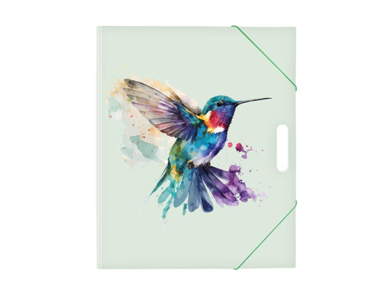 Zložka na výkresy v zelenej farbe s motívom kolibríka. Je vyrobená z kvalitného lepenkového kartónu, potiahnutého laminom. Vnútri zložky sú rohy na uchytenie výkresov A4. Zložka je opatrená gumičkou na pevné uzavretie a priechodkou na jednoduché prenášanie. Výkresy tak zostanú neporušené. Formát: A4 Farba: zelená Motív: kolibrík Materiál: lepenkový kartón s laminom Uvedená cena je za 1 ks.
